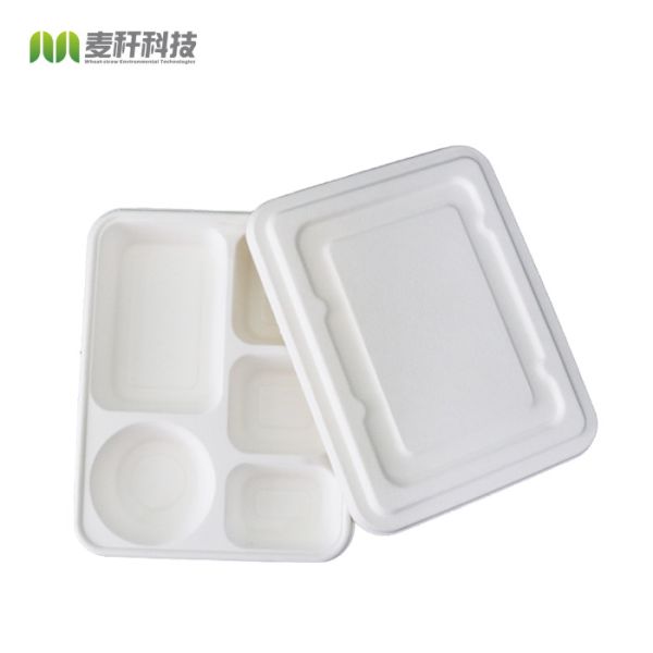 New item Compostable bagasse oblong 5 section compartment dinner Plate Images |